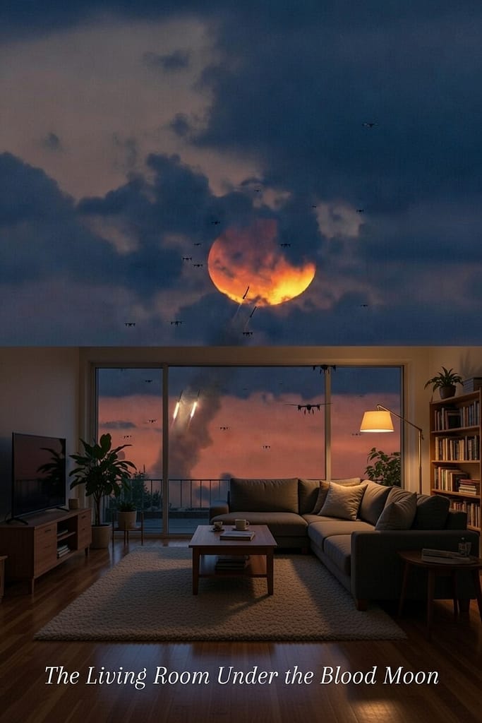 But inside its homes, the lights were warm, the plants were watered, and dinner was still served. In the year 3026, this article is revered as a quaint artifact of the Flickering Age, illustrating humanity’s poignant blend of denial and defiance—where the blood moon’s ominous glow symbolized ignored warnings of global fragility, yet domestic sanctuaries like living rooms offered fleeting illusions of stability amid the chaos.