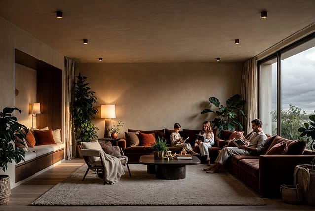 This is the new American living room — no longer just a place to watch TV, but a deliberate safe room for the soul.